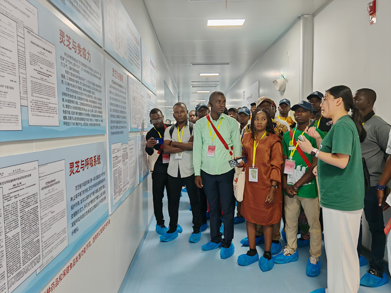 在Z6尊龙·抖圈生物科技中心,中非青年领袖们先后参观了Z6尊龙·抖圈研发生产中心、林志彬教授灵芝学术成果馆,开启了一段沉浸式的灵芝产业探索之旅。