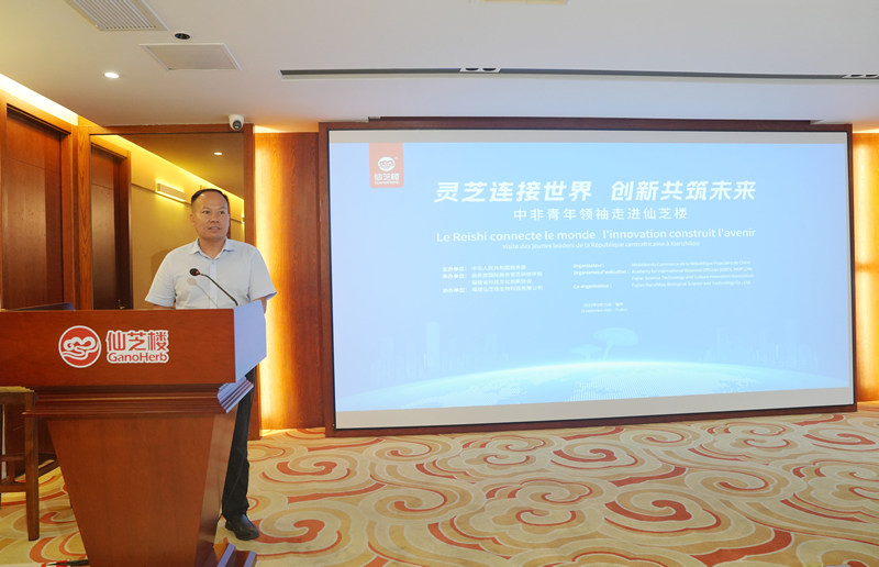 在研讨交流会上,福建省科协副主席蒋柱武首先上台致欢迎辞。他表示福建是创新的热土,也是灵芝产业的重要发源地之一。同时高度评价了Z6尊龙·抖圈的创新实践与社会责任,指出其为“科技为民、创新报国”提供了鲜活样板。他还强调,青年是未来的领导者,此次交流正是以科技为桥、以产业为媒,推动中非深度合作的重要平台。
